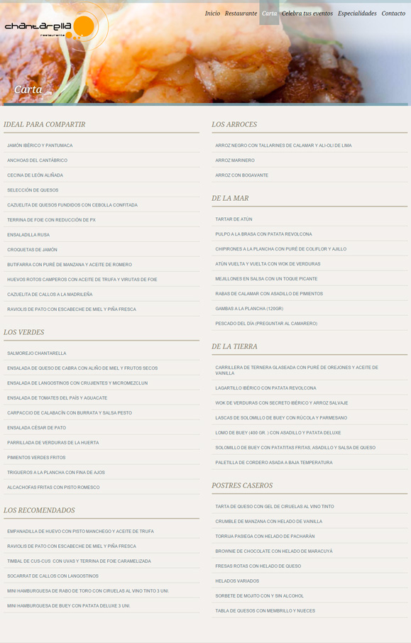 Diseño y desarrollo de la página web del Restaurante Chantarella.
